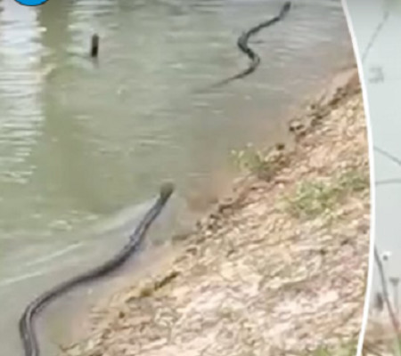 Tailandeses presenciaram o dramático momento em que uma grande serpente inicia a perseguição contra uma serpente menor em um rio. Veja ao vídeo abaixo.