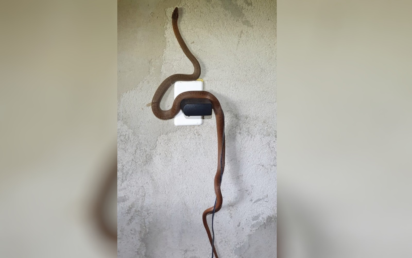 Uma moradora de Aruanã, cidade do noroeste goiano, levou um susto na manhã de quarta-feira (15) ao encontrar uma cobra enrolada ao carregador do celular, segundo o Corpo de Bombeiros. Um vídeo gravado por um bombeiro mostra o resgate e a soltura do animal em um lago.