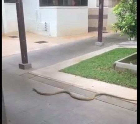 Uma moradora de Singapura compartilhou o vídeo de uma cobra-rei de quase dois metros de comprimento, que estava perambulando pela cidade, no momento de compras da singapuriana.