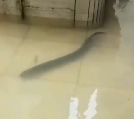 Depois de chover em Belém o equivalente a 149 mm somente nesta segunda-feira (9), uma moradora do conjunto Jardim Itororó I, no bairro do Curió-Utinga, registrou o momento em que um “Poraquê” circula tranquilamente pela área alagada da propriedade.