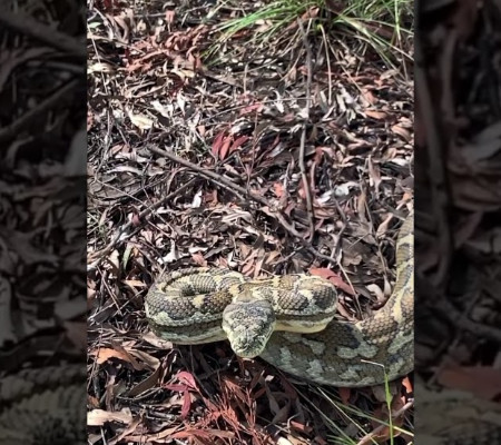 Uma píton nada amigável, de uns três metros de comprimento e 12 quilos, foi avistada na região de Brisbane, na Austrália