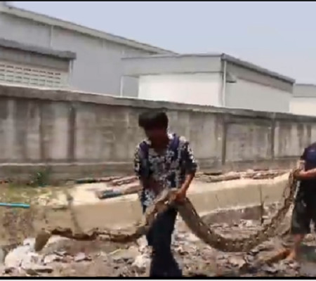 Domadores de cobra, em um esforço que parece ter saído de um filme de ação, capturaram uma píton de aproximadamente seis metros. Animal já é o maior réptil encontrado neste ano no país