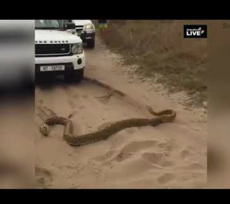 Nas imagens é possível ver uma píton de 5 metros tentando subir no veículo e atacando os turistas que estavam em uma estrada de areia na cidade sul-africana de Durban. No início da gravação, a cobra é vista entrando debaixo do reboque de um barco, enquanto um rapaz tenta agarrá-la pela cauda e removê-la do local.