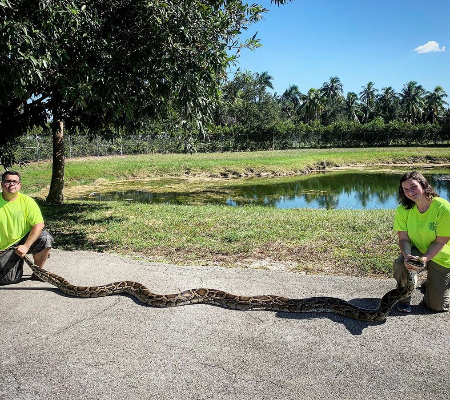 A equipe trabalha na captura das pítons gigantes para impedir a proliferação de filhotes na região, já que a cada reprodução elas adicionam de 30 a 60 novos filhotes, segundo a CNN. Essas cobras, juntamente com milhares removidas por nossos parceiros [...] causam um impacto significativo na proteção da vida selvagem nativa da Flórida", afirmou Eric Sutton, diretor executivo da Comissão de Conservação.