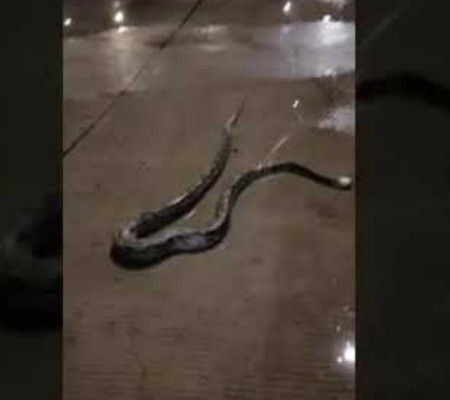Uma píton de aproximadamente 3 metros ficou entalada em um bueiro na cidade de Tangerang, na Indonésia, depois das fortes chuvas que atingiram a região.