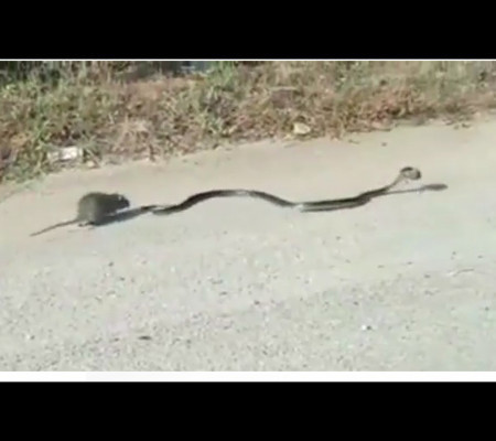 Uma cena inusitada acabou viralizando nas redes sociais. Uma ratinha brigou bravamente com uma cobra para salvar seu filhote. Para salvá-lo, a ratinha perseguiu a cobra, mordendo a sua cauda, até ela soltar o ratinho.