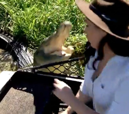 Logo após "sorrir" para a fotografia, o réptil decide tentar atacar a repórter rapidamente. Felizmente, Zarisha reagiu no mesmo momento e se distanciou do crocodilo. Apesar do grave risco, a repórter não perdeu o senso de humor.
