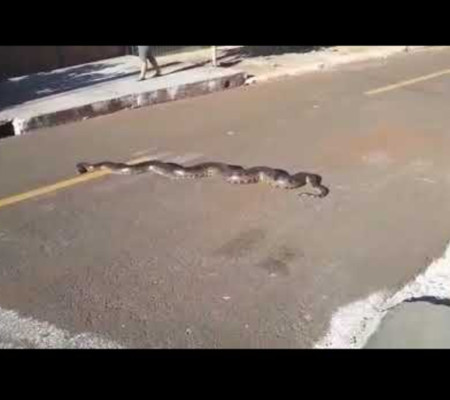 Uma sucuri de aproximadamente três metros de comprimento deixou os moradores da região do Paraná assustados na tarde de terça-feira (21) após impedir o tráfego de carros no município de Guaíra.