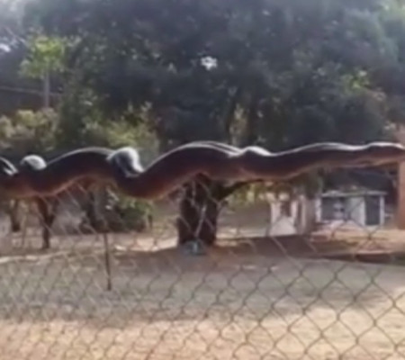 Pelo vídeo, é possível ver a sucuri bem em cima da cerca de proteção, se balançando. Ela foi monitorada para que ninguém se aproximasse e depois seguiu para o lado da represa, sem problemas, de acordo com o pelotão.