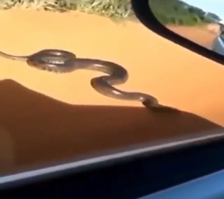 Um homem que estava andando de carro por uma estrada de terra foi surpreendido por uma sucuri de sete metros de comprimento que atacou o veículo. Ao tentar passar com o veículo do lado da cobra, o carro em que o fazendeiro estava foi atacado. O fazendeiro que encontrou o animal disse que não é a primeira vez que a cobra é vista no local. Veja o vídeo: