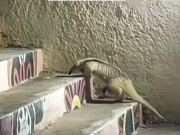 Tamanduá é visto passeando em escadaria de Amarante