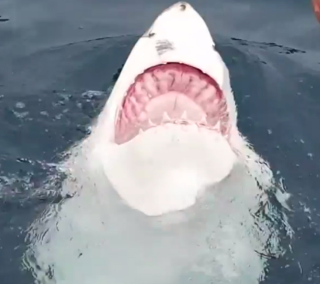 Um tubarão-branco foi flagrado por mergulhadores nadando em torno da embarcação de maneira assustadora, como nunca vista antes, gerando questionamentos entre os passageiros.