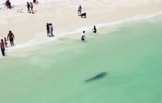 Imagens impressionates mostram o momento em que banhistas correram de um tubarão-tigre de grande porte que chegou bem perto (cerca de 5 metros) da areia em praia de Perth (Austrália) na tarde de segunda-feira (3/1).