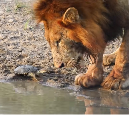 Esta pequena tartaruga mostrou aos leões quem manda e os expulsou de seu poço.