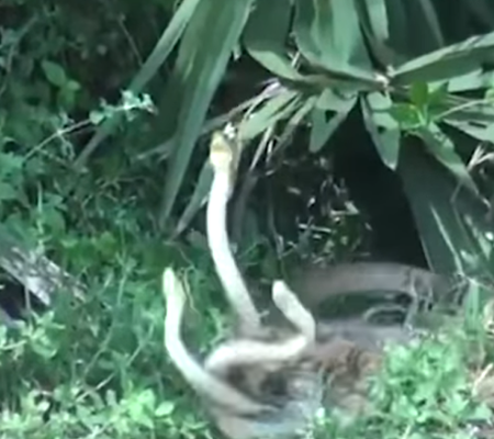 Uma das serpentes abandona o combate primeiro, em seguida, as duas restantes fazem o mesmo entrando de volta na selva. Dezenas de pessoas se reuniram e tiraram fotos e vídeos do acontecimento. As filmagens foram feitas na aldeia de Arasaradivandal, no estado indiano de Tamil Nadu, e postadas pelo site Daily Mail.