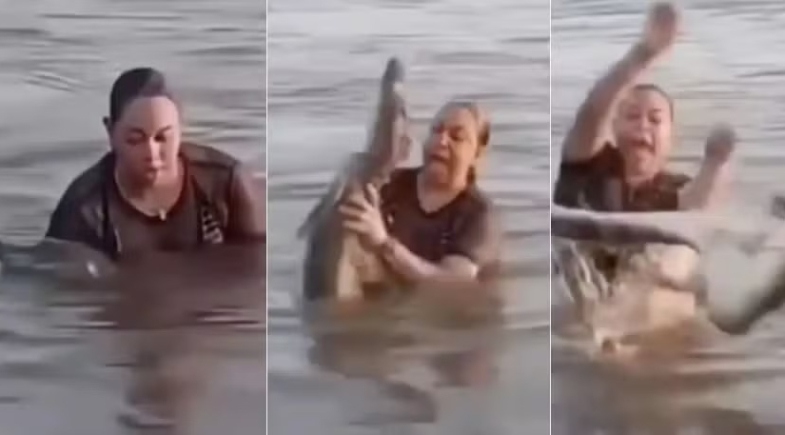 Uma mulher que estava se banhando numa lagoa na região de Cozumel y Campeche (México), achou ter visto um pedaço de tronco de árvore flutuando e passando por ela. A banhista, então, segurou o objeto. Um segundo depois, ela entrou em pânico: na verdade ela havia segurado um jacaré!