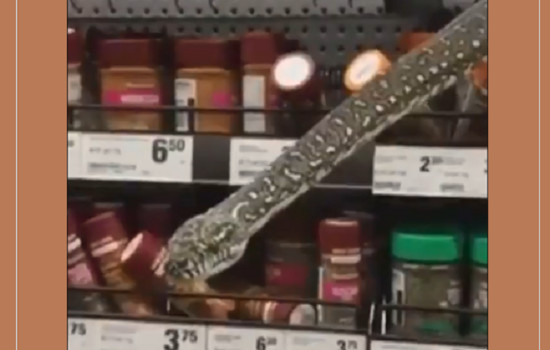 Parecia um dia comum de compras no supermercado, mas no meio dos produtos uma surpresa. Uma enorme cobra píton, de cerca de 3 metros de comprimento, apareceu entre uma prateleira de supermercado em em Sydney, na Austrália. A cena foi flagrada por uma cliente que realizava compras no local.