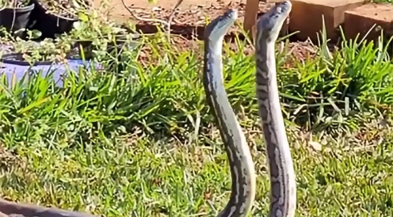Um vídeo recebido por especialistas em resgates de répteis do Sunshine Coast Snakecatchers, na Austrália mostra uma batalha entre duas pítons-carpete na época do acasalamento.