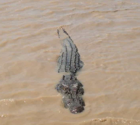 No ataque um dos enormes jacarés passava pelo local, e deu o bote "rodopiando', com sua presa.