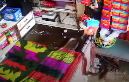 Uma cena arrepiante. Na Índia, um jovem comerciante quase foi atacado por uma cobra venenosa que perseguia um rato dentro do seu estabelecimento.