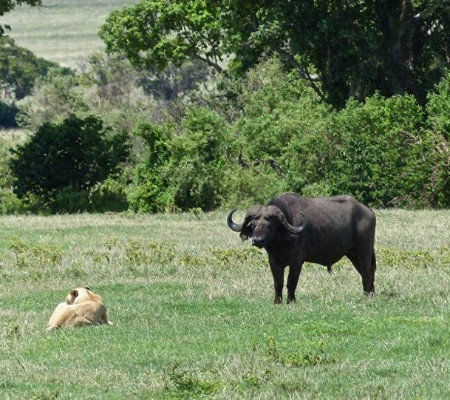 De início, o animal aparece dormindo enquanto um leão espreita atrás de uma moita, o que acabou por acordar o búfalo. Vendo o leão sozinho, o búfalo não temeu e avançou sobre o felino, conforme visto no vídeo abaixo.