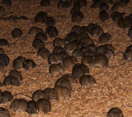 Na filmagem, podemos observar diversos ratos caindo da máquina. A infestação está assolando o país e fez com que fazendeiros e governo combatessem os roedores.