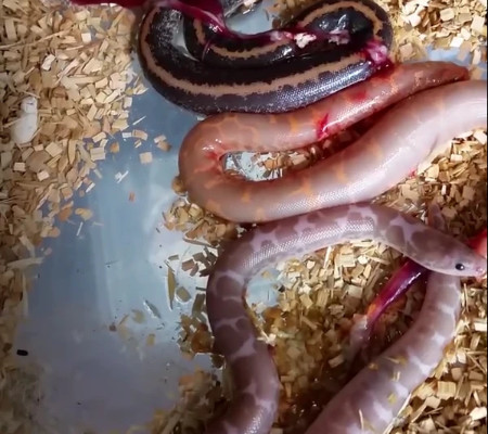 O vídeo original foi publicado na página do Facebook da Reptile Collective, uma loja de animais on-line americana especializada em cobras, e vê três jiboias de areia chegando ao mundo.