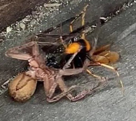 Vídeo mostra luta até a morte entre aranha caçadora e vespa gigante
