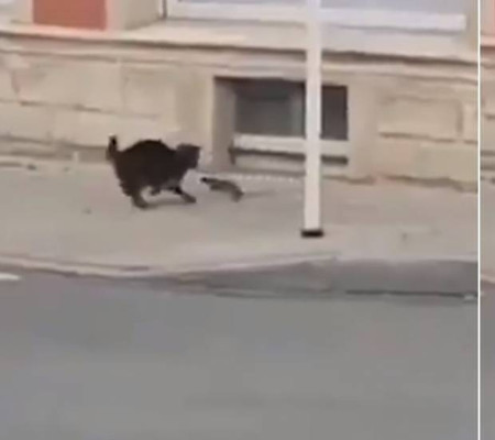 Vídeo mostra rato perseguindo e dando uma surra em gato na rua; veja