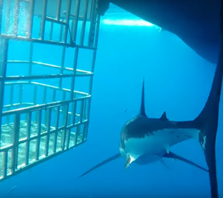 Apesar do susto, de sentir o tubarão tão próximo, chegando até mesmo a tocar o corpo de um dos mergulhadores, aparentemente, o predador estava interessado em outra presa, já que perseguia um peixe. Momentos depois, o gigante predador aparece com sua presa entre suas mandíbulas.