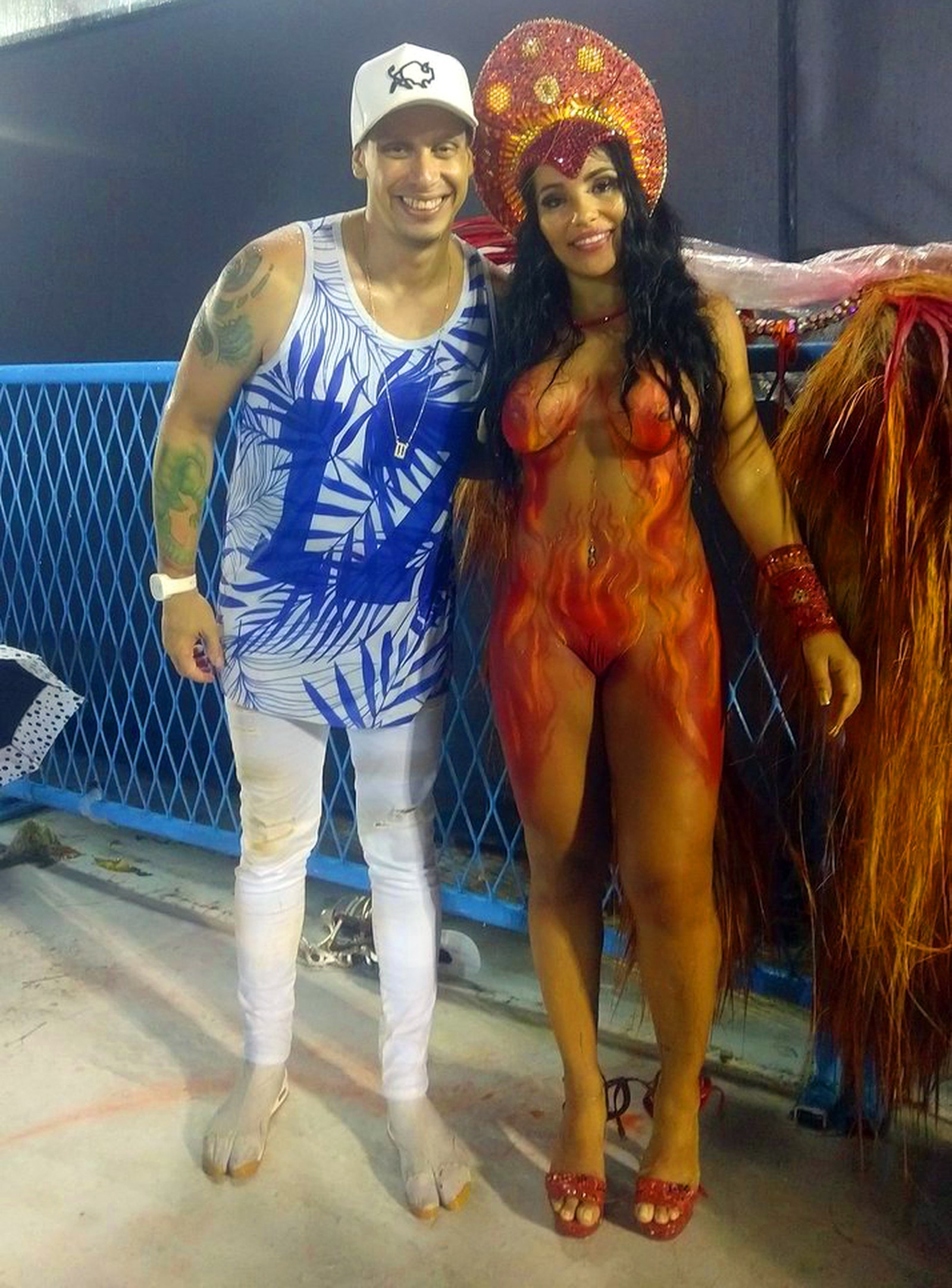 “Ele devia estar com 6,7cm, mas, com a chuva, acho que encolheu. Aí virei a musa da virilha cavada! Desfilei um pouco tensa para não mostrar nada, colocando um pouco da mão na frente, mas acho que deu tudo certo. Não mostrei nada demais, não”, disse ela na dispersão da escola.