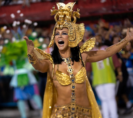 Paolla Oliveira voltou à Sapucaí após 10 anos como rainha de bateria da Grande Rio neste domingo (23). Vestida de Cleópatra, ela cruzou a avenida levantando o público e chegou ao fim da Passarela de Samba emocionada. As informações são do G1.