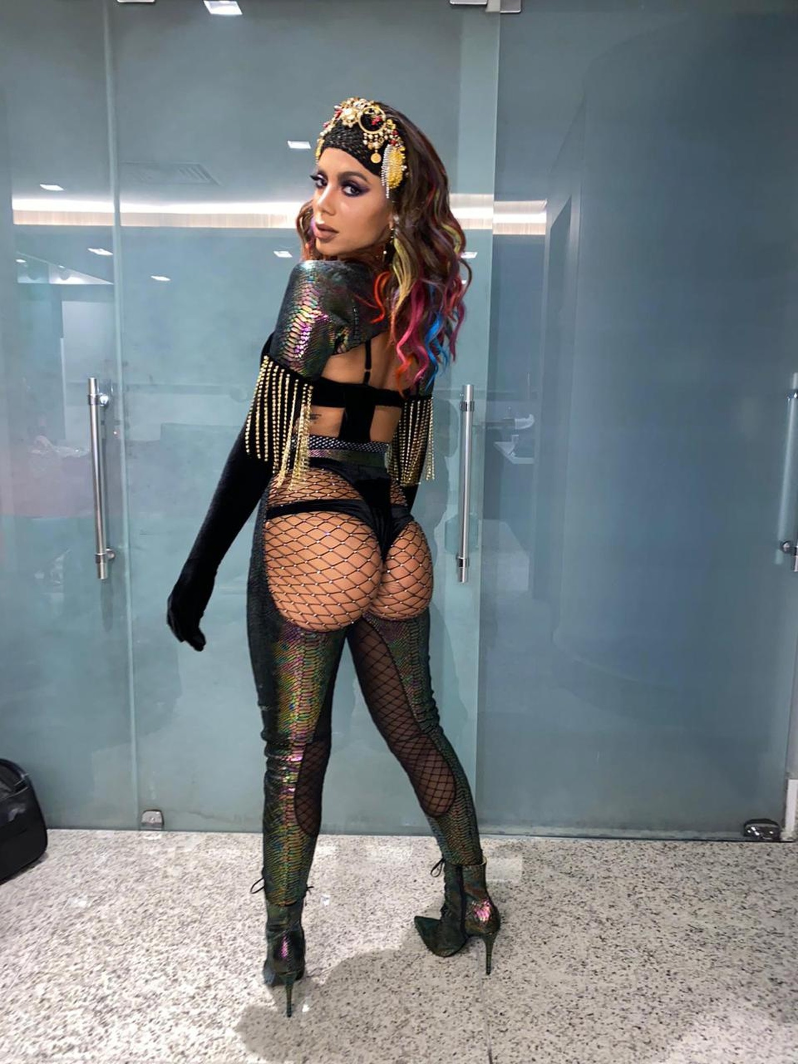 Antes de chegar à Sapucaí para curtir o primeiro dia de desfiles do Grupo Especial do Rio de Janeiro, a cantora Anitta divulgou seu look "lagarto", com direito a bumbum de fora. As informações são do G1.