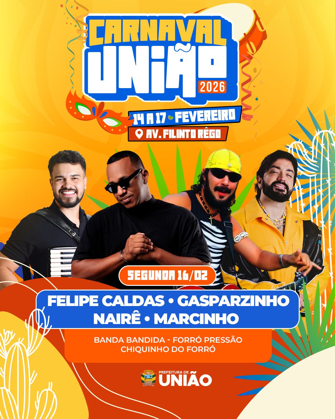 Com quatro dias de festa e animação programados, a cidade de União celebra, nesta segunda-feira (16), o terceiro dia do evento, marcado por tradição e espírito carnavalesco.