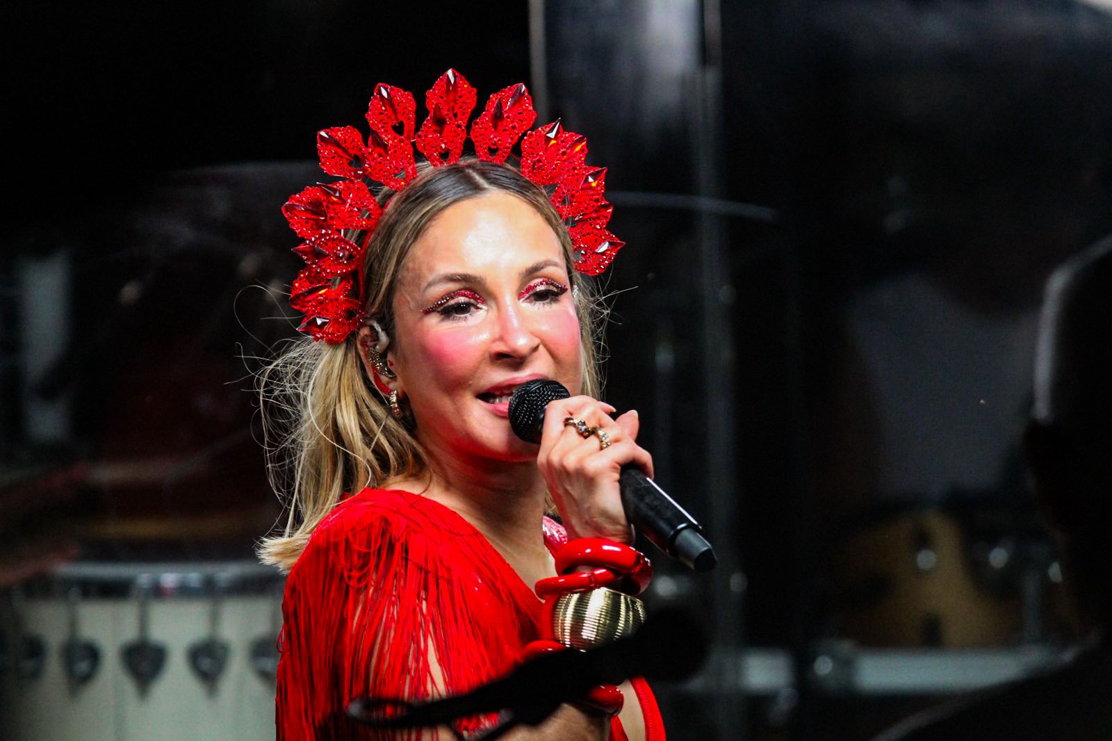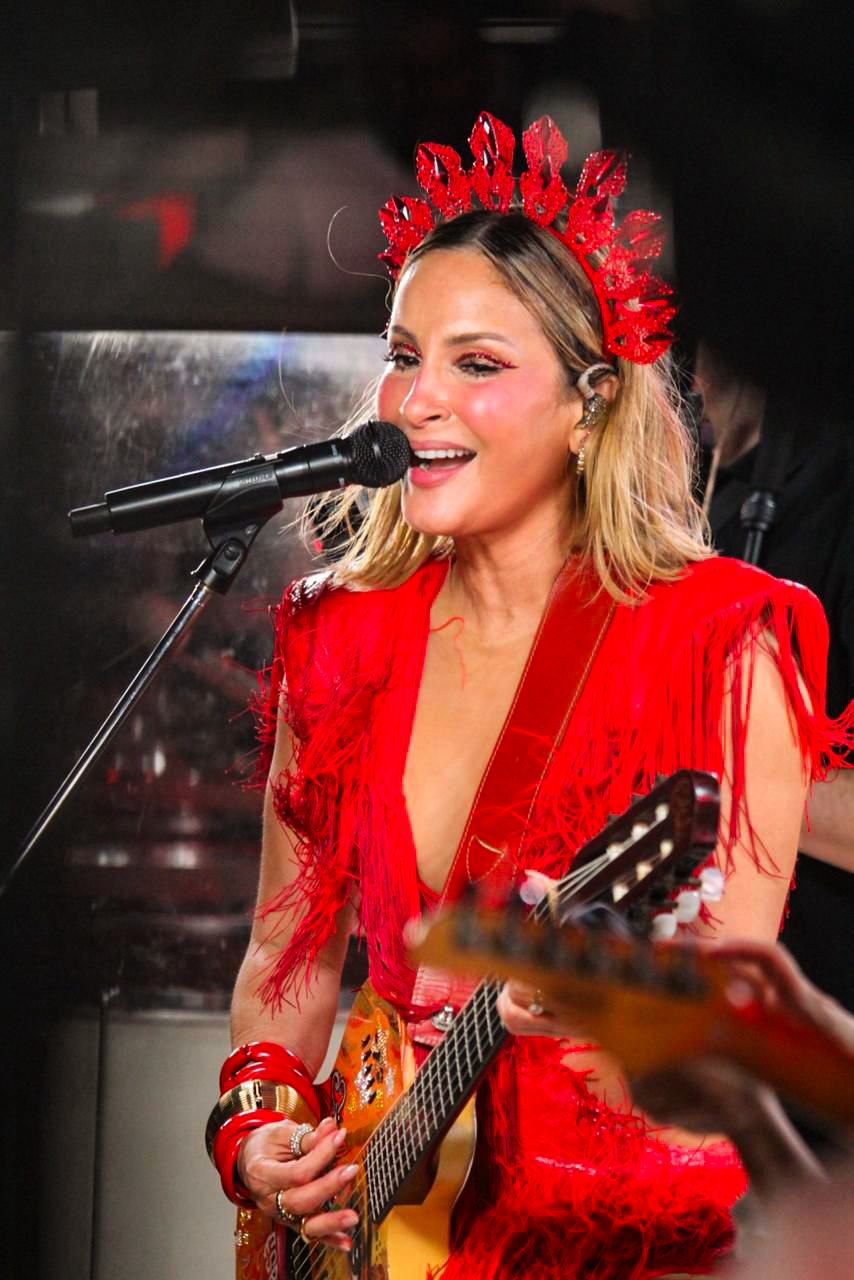 Ai, meu Deus, estou me sentindo tão feliz de estar aqui. Hoje eu vim radiante para extravasar em cima do trio. Tô com um monte de música nova, tô com gosto de carnaval na boca. Tô muito feliz, quero me divertir com vocês.