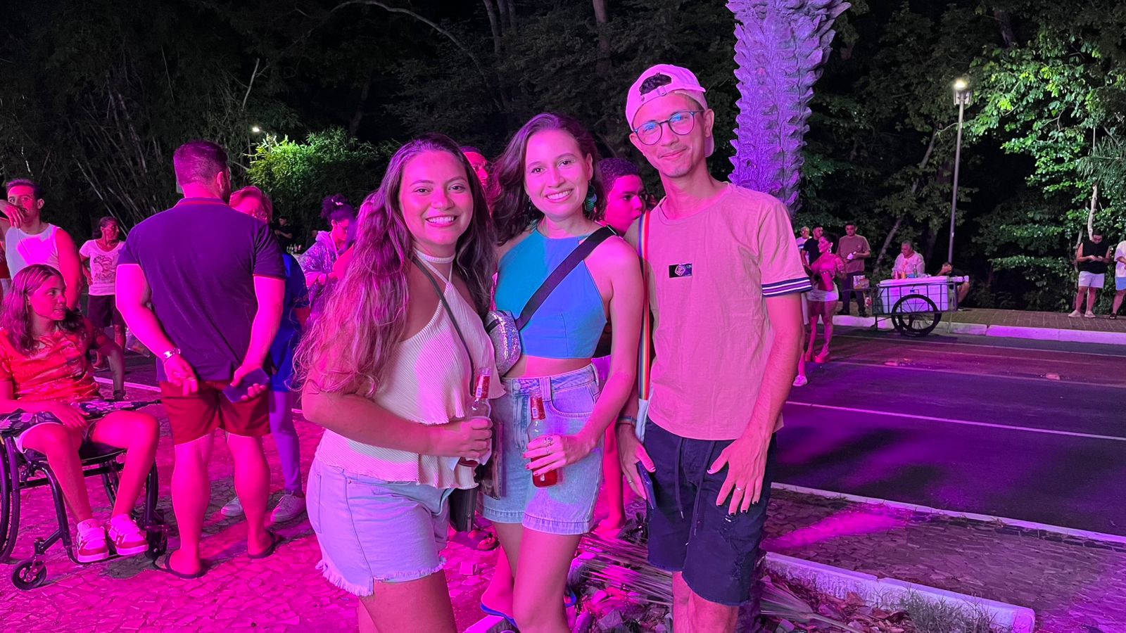 Durante o percurso do trio, era possível ver famílias, grupos de amigos e turistas acompanhando o show, reforçando o caráter popular da festa.