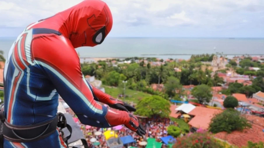 No Alto da Sé, o Homem-Aranha de Olinda encantou uma multidão de foliões, entre crianças e adultos, com a sua tradicional descida da Caixa D'água de Olinda, uma das principais edificações do sítio histórico da cidade. Pendurado em cabos de segurança, o super-herói da Marvel travou uma batalha contra o mal a 22 metros de altura neste domingo (19).