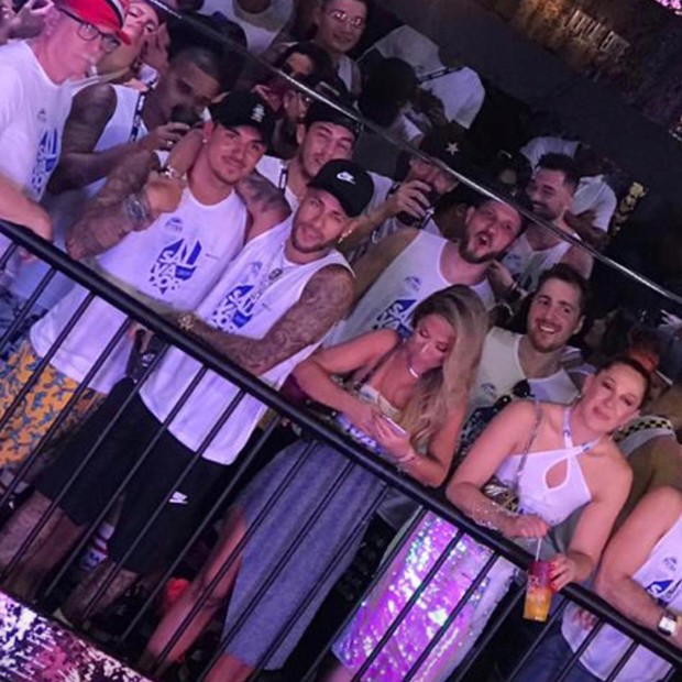 O craque do Paris Saint-Germain e da Seleção Brasileira, que está em um camarote VIP, chegou a filmar o trio de Anitta, onde Marquezine foi fotografada e filmada descendo até o chão enquanto dançava muito!