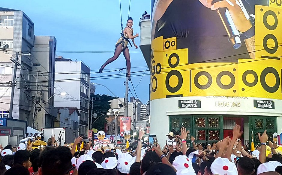 Suspensa em um guindaste instalado em frente ao Farol da Barra, a cantora sobrevoou o público cerca de 20 minutos até aterrissar no trio vestida de Madonna, a homenageada do dia, cantando o refrão de "Claudinha bagunceira".
