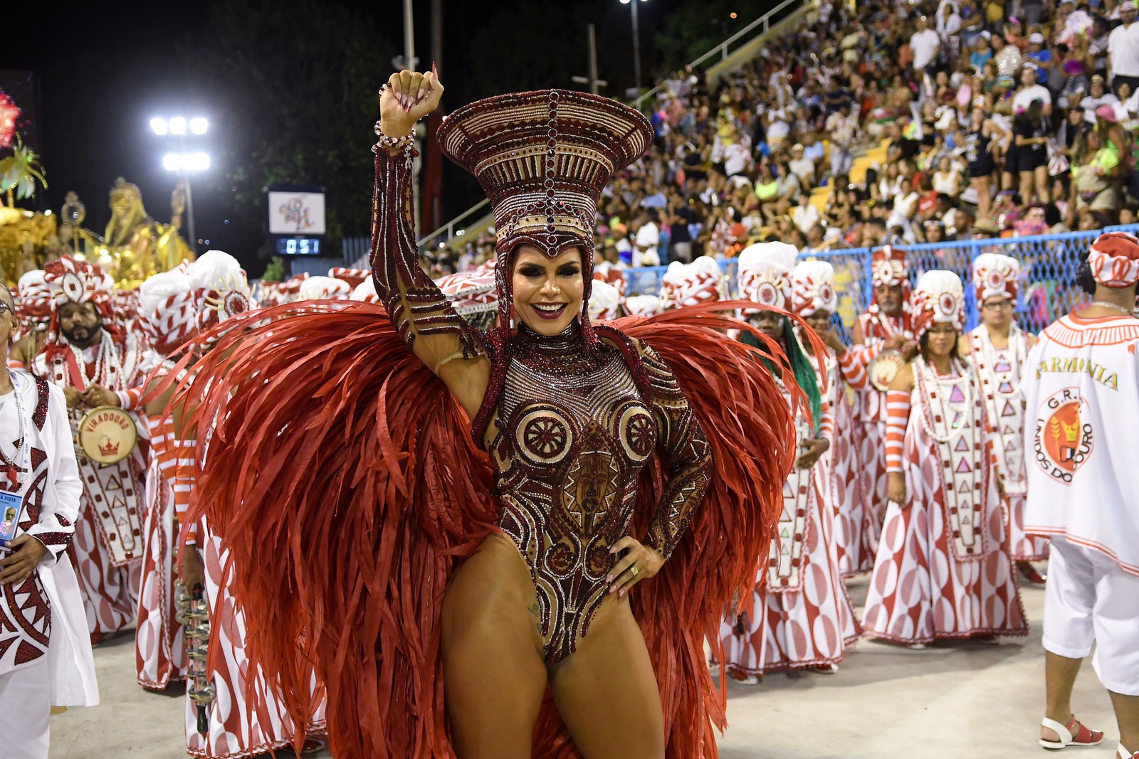 A rainha de bateria, Raissa Machado, pelo sétimo ano na Viradouro, vestiu uma fantasia em homenagem à rainha dos Malês, Luiza Mahin, uma das lideranças da revolta pela libertação dos escravos em Salvador.