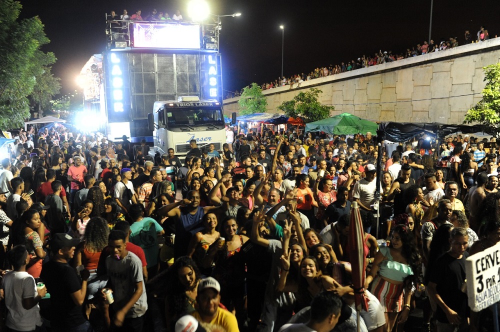Multidão seguiu os trios com coreografias. Foto: Edi Vasconceles
