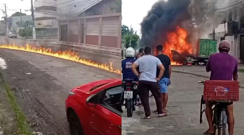 O fogo se propagou por um rastro de combustível deixado pela motocicleta enquanto era arrastada. O incêndio chamou a atenção de moradores da região e gerou momentos de tensão.