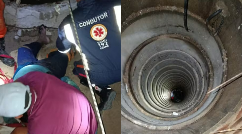 Um homem de 55 anos foi resgatado pelo Corpo de Bombeiros após cair em uma cacimba de aproximadamente 20 metros de profundidade, na noite desta quarta-feira (4), no distrito de Pedro Galvão, no município de Tururu, interior do Ceará.