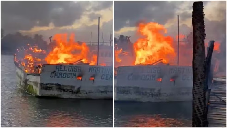 Um incêndio destruiu uma embarcação de pesca na praia de Torrões, em Itarema, no litoral oeste do Ceará, nesta segunda-feira (8). O dono do barco relatou à polícia que o fogo foi criminoso, iniciado por bandidos após ele se recusar a pagar uma "taxa" exigida pelos criminosos.