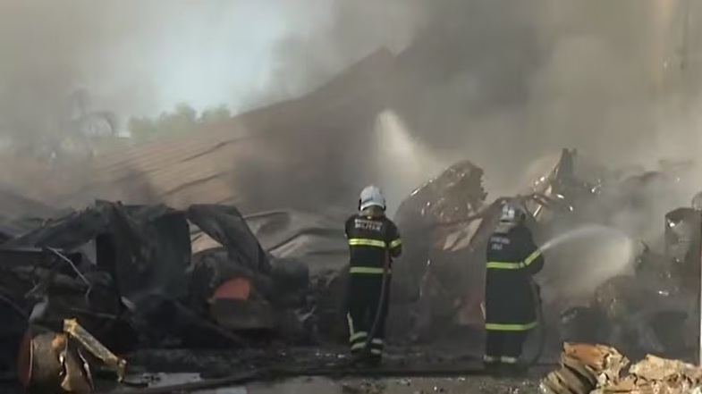 Galpão empresarial é devastado por incêndio de grandes proporções no Ceará