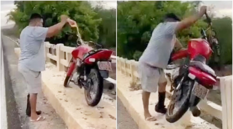 Dias antes de ser morto, homem despejou gasolina na moto de um desafeto e jogou o veículo em rio | Foto: Reprodução