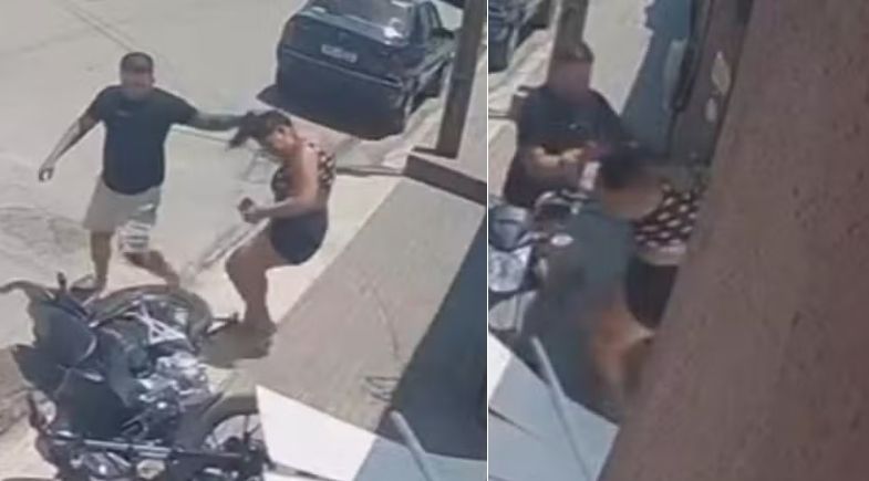 Câmeras de segurança registraram toda a ação de violência. Nas imagens, é possível ver o momento em que o suspeito bate uma motocicleta contra o portão do local e logo em seguida invade o espaço. Após a invasão, a mulher é retirada à força.