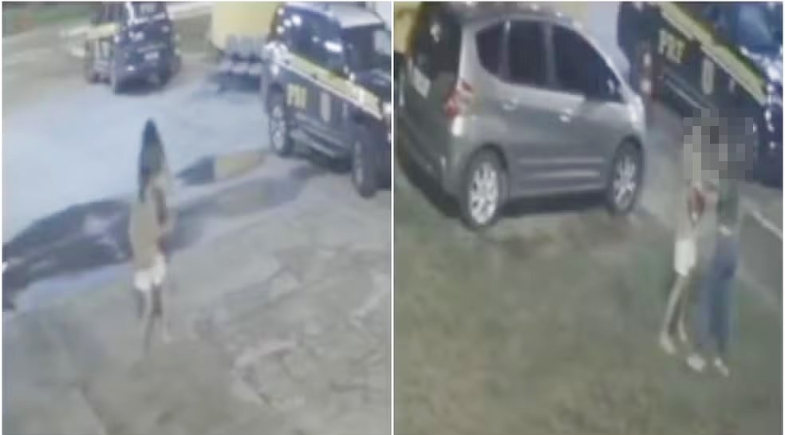 Câmeras de segurança registraram a ocorrência. Com o impacto da queda na pista, a vítima sofreu escoriações pelo corpo e sangramento na cabeça. Mesmo ferida, conseguiu se levantar e correu até a unidade operacional da Polícia Rodoviária Federal em busca de ajuda.