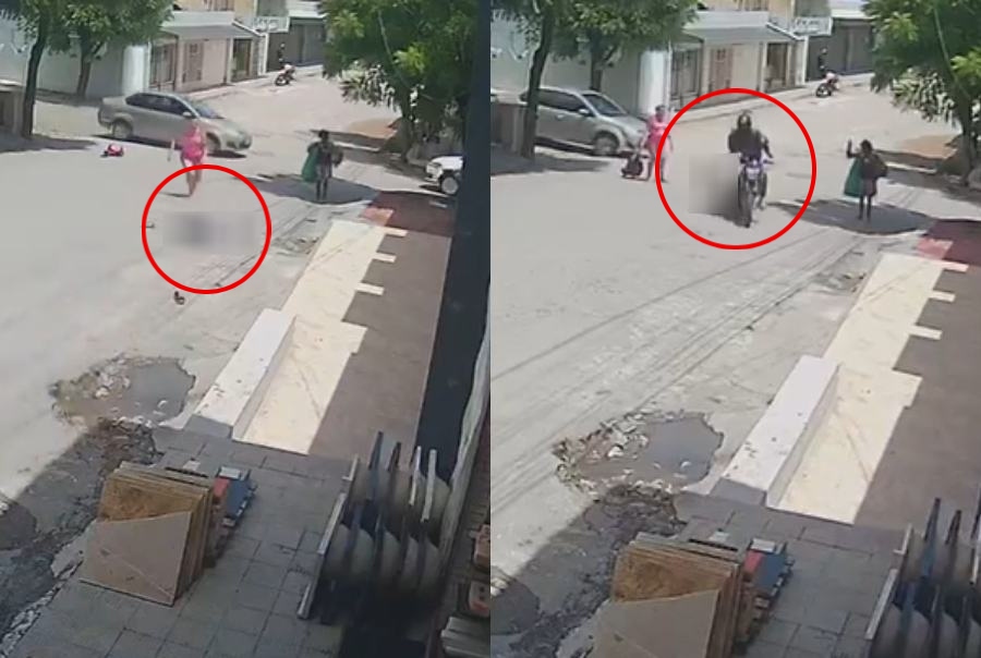 Uma criança foi atropelada e arrastada por um motociclista ao atravessar correndo uma rua, no município de Canindé, no interior do Ceará. O acidente foi registrado por câmeras de monitoramento. O caso aconteceu no final da manhã de quarta-feira (23).