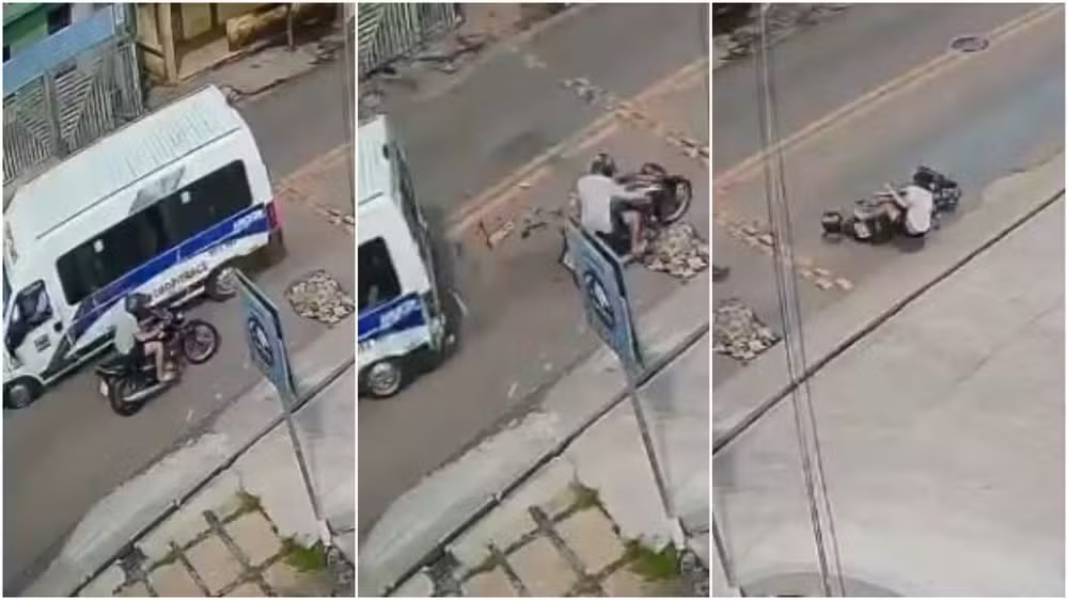 No início deste sábado (26), uma topique de transporte de passageiros bateu na traseira de um carro e em seguida derrubou um motociclista na Avenida Salmito Ferreira De Almeida, em São Benedito (CE). Imagens de câmeras de monitoramento mostram que o veículo estava em alta velocidade quando causou o acidente.